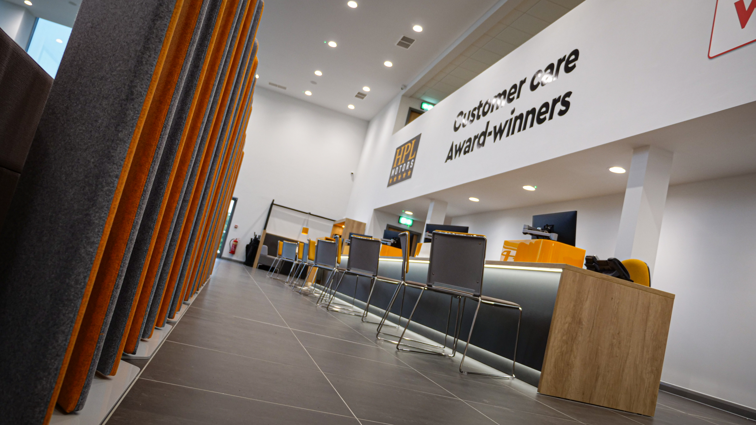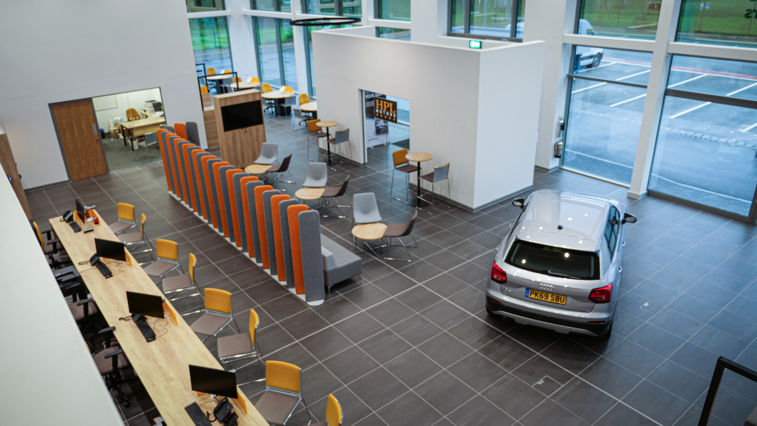 Interact were commissioned by HPL Motors to design and supply a light, airy and relaxed showroom with a ‘hotel lobby feel’.