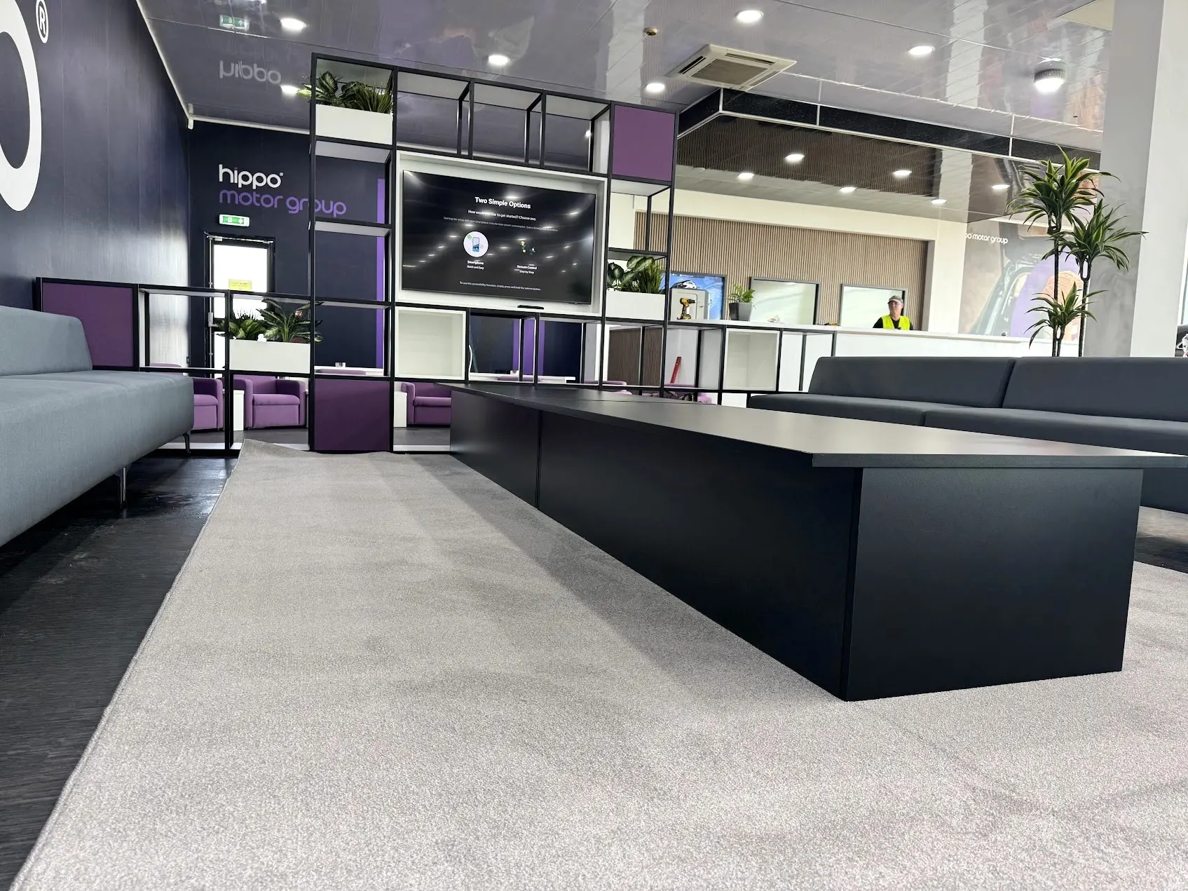 We were recently approached by Hippo Motor Group, a UK-based independent used car dealer, to design and supply the furniture at their new Peterborough site. The key requirement of this project was a quick turnaround time, which we were more than happy to facilitate. From first contact to installation, the duration of the project was 4 weeks, with the design generated within one week.