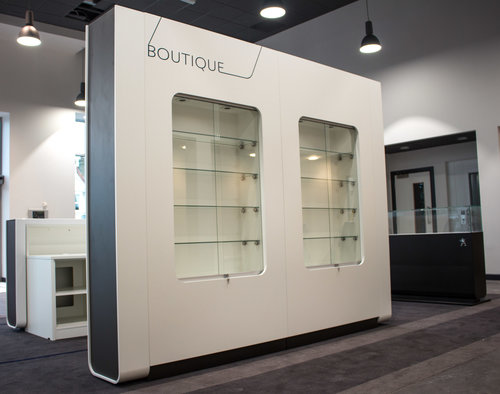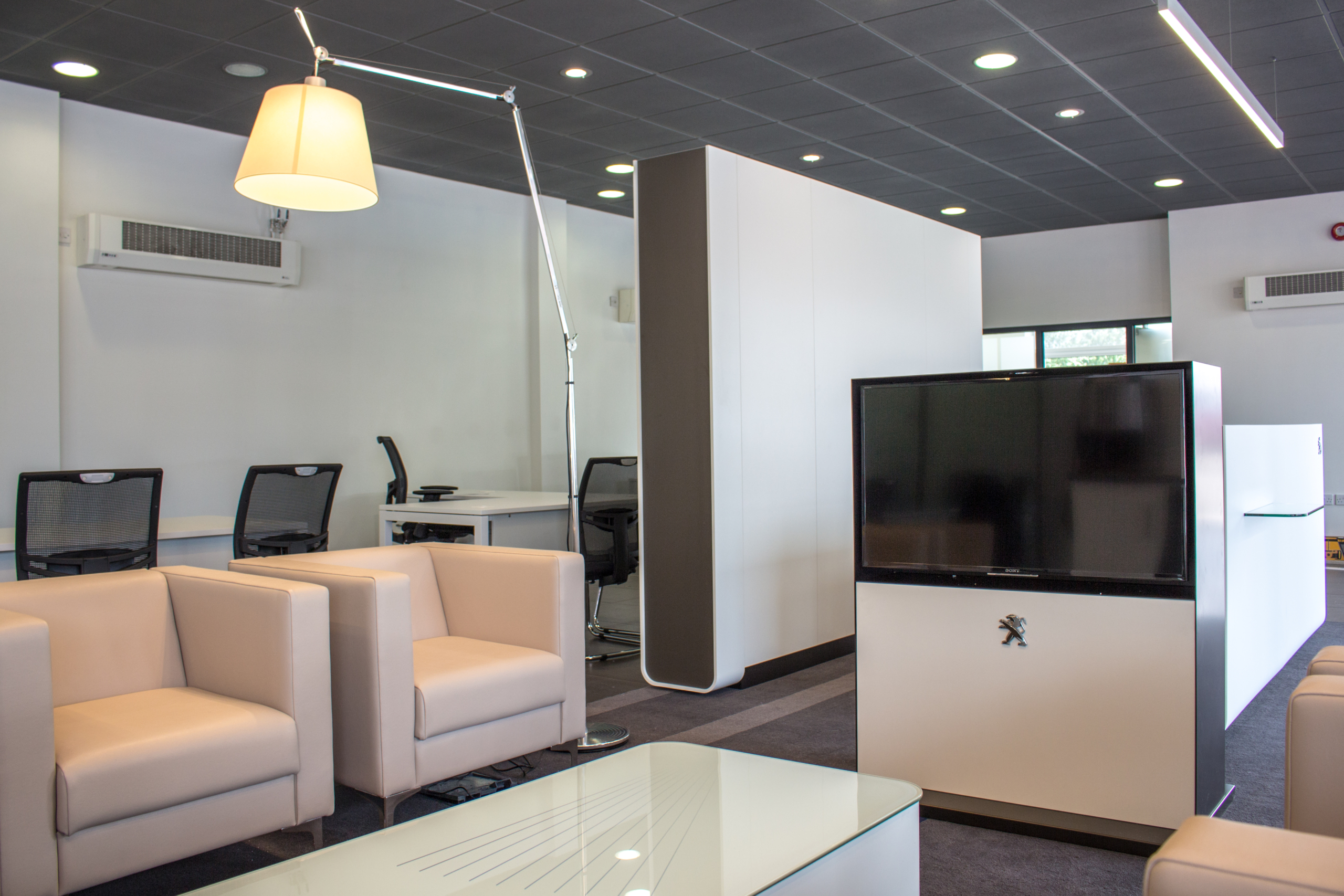 By substituting high end materials with cost effective, manufacturing friendly alternatives and by re-engineering over- sized constructions into completely bespoke, flat-pack modular furniture systems we have been able to facilitate considerable cost savings for Peugeot, greatly reduced the manufacturing lead time and installation process and still retained the heart and essence of Peugeot’s corporate identity to the satisfaction of their Euro-centralised design house and brand guardians.